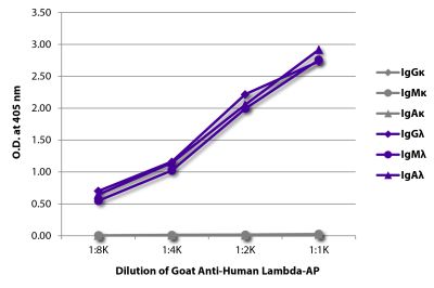 Goat Anti-Human IgG-AP antibody for use in ELISA, immunohistochemistry / immunocytochemistry, western blot, and ELISpot assays.