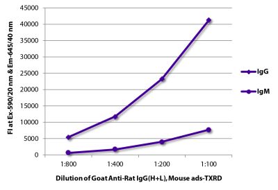 Goat Anti-Rat IgM-Texas Red antibody for use in flow cytometry and immunohistochemistry / immunocytochemistry assays.