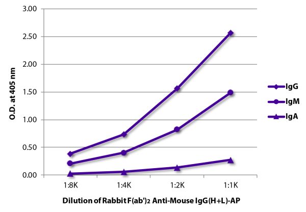 Rabbit F(ab')2 Anti-Mouse IgG(H+L)-AP antibody for use in ELISA and immunocytochemistry assays.